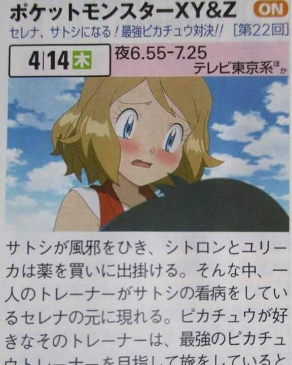 Também deixo para vocês a Preview do próximo episódio XYZ 22 – Serena se torna Ash! O Confronto Definitivo de Pikachu!, que será exibido no dia 14/04/16 na TV Tókyo: